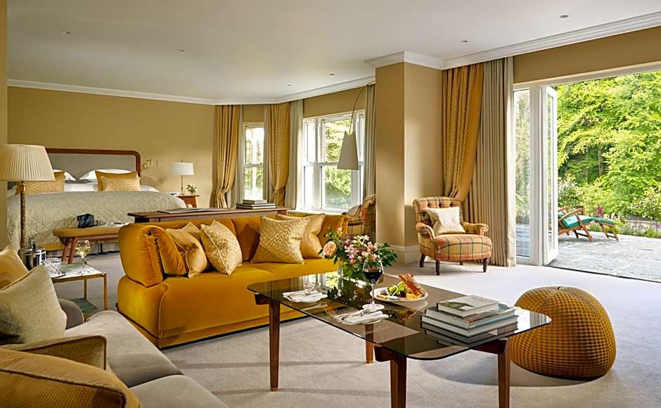 Spacious Deluxe Room with an Italian marble bathroom and views overlooking the Kenmare Bay. This room is nonsmoking.